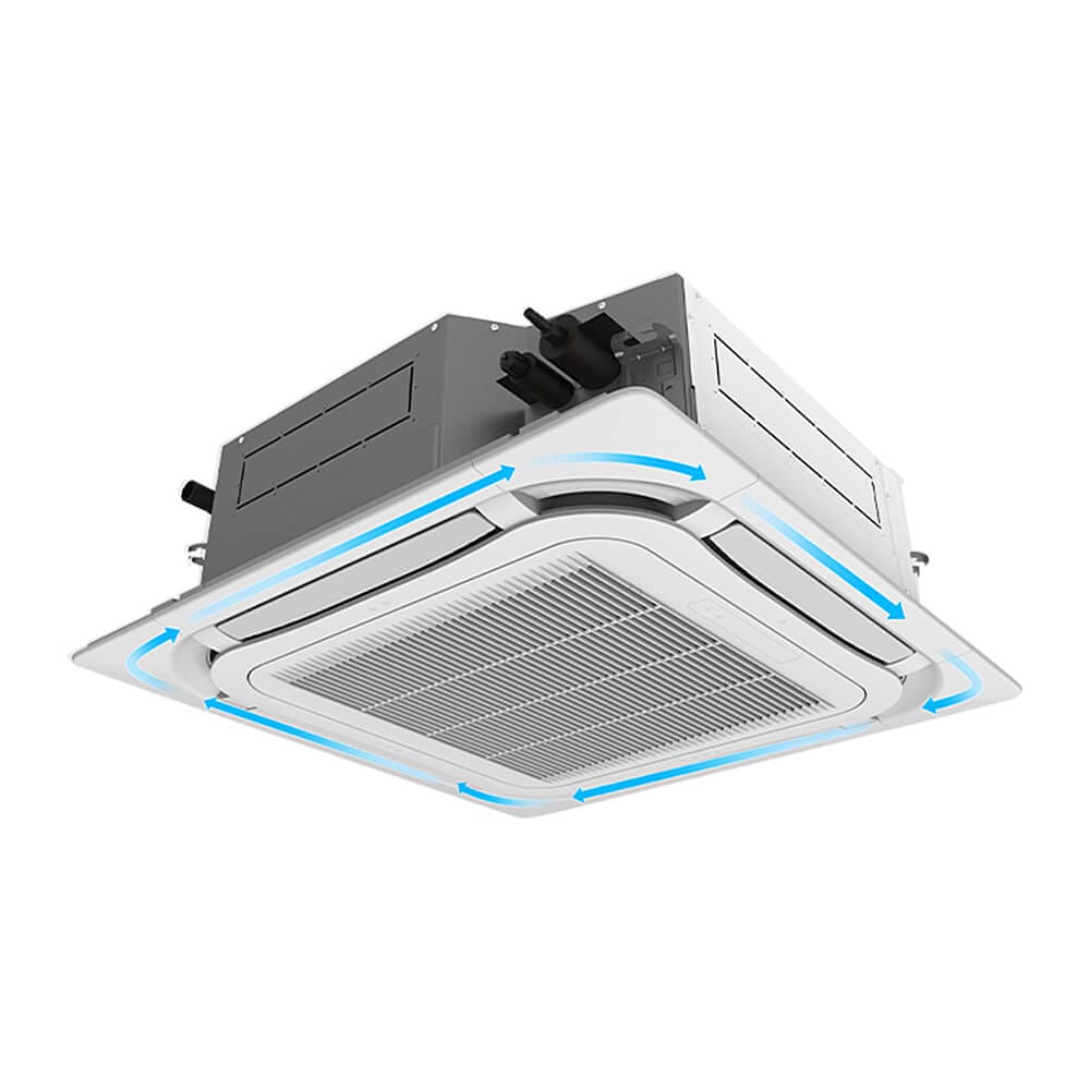 - Кассетный кондиционер предназначен для установки на потолок, обеспечивая охлаждение, не занимая места на полу. Его сдержанный дизайн гармонично впишется в интерьер вашей комнаты.